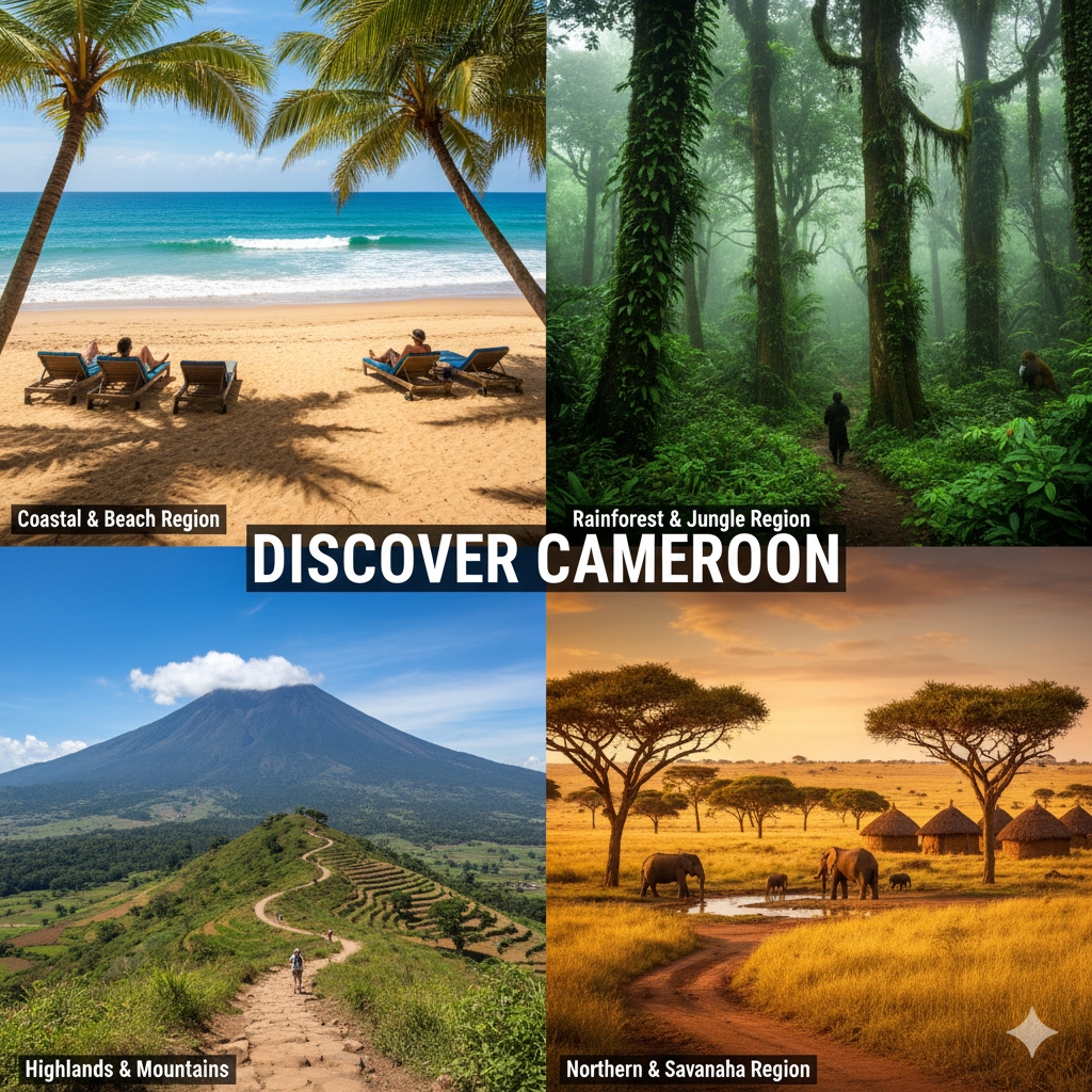 Cameroon is diverse — from lush jungles to coasts, mountains to savannas. Here are four of the most appealing touristic areas worth exploring: