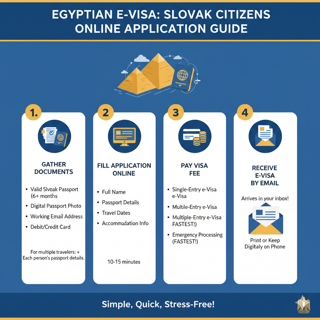 This guide walks you through everything you need to know about applying for an Egyptian visa for Slovak Citizens, step by step. You’ll also find helpful tips, common mistakes to avoid, application status insights, emergency visa info, and even an honest comparison between applying through an agent vs. the government website (spoiler: the agent option has clear advantages).