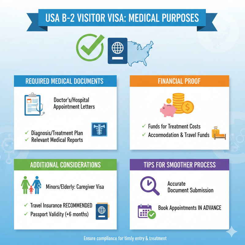 You can bring a patient to the USA using a B-2 visitor visa, which allows entry for medical purposes.