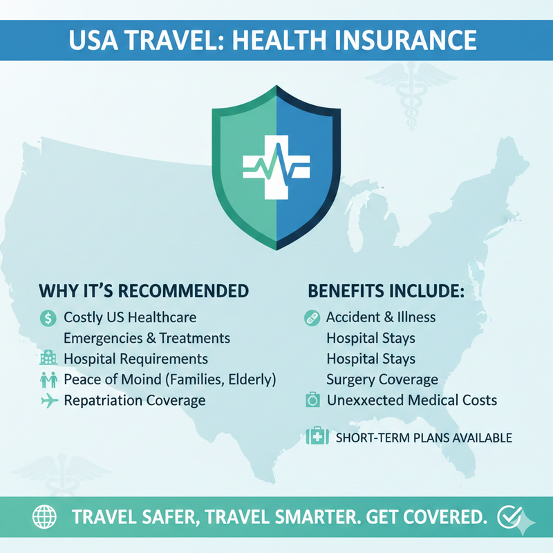 - Health insurance is not mandatory for most visitors to the USA.